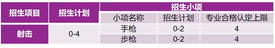 我校将根据全国体育专业测试考生成绩和本校的招生计划,综合考虑各分项的急需程度,优先考虑各分项第一名且每个分项认定不超过2人,经学校相关程序确定体教融合发展射击项目认定名单及认定排序,按照教育部相关规定进行公示。