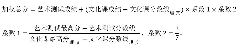 文化课成绩达到分数线,且艺术专业测试成绩达90分(含)以上的考生,按加权总分由高到低排序,分艺术项目进行认定。